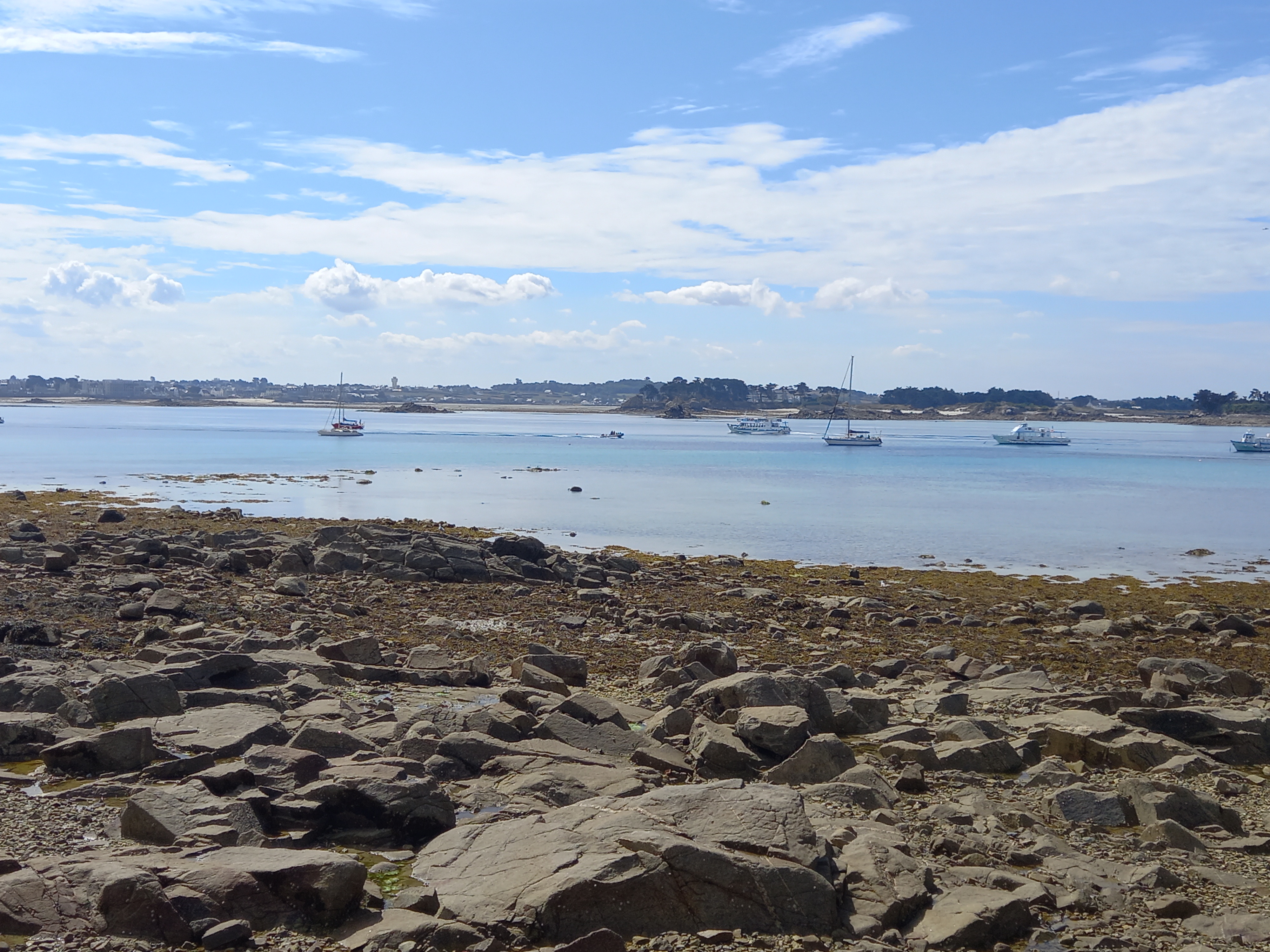 Belle île, belles balades, face à Roscoff, la traversée rapide, agréable, phénomène des marées au 1 er rang là, quand on ne connaît pas, cela est tout à fait étonnant !!