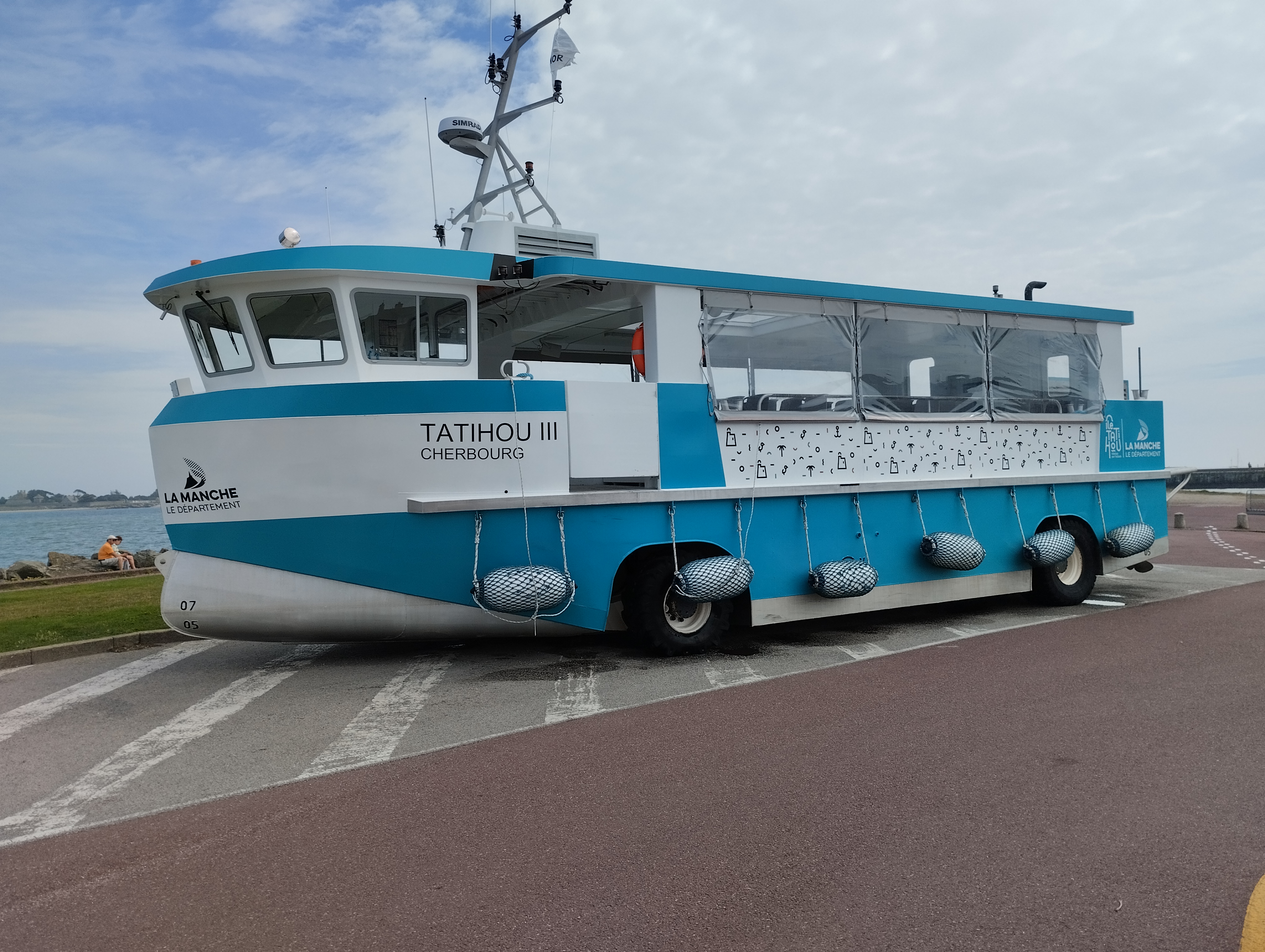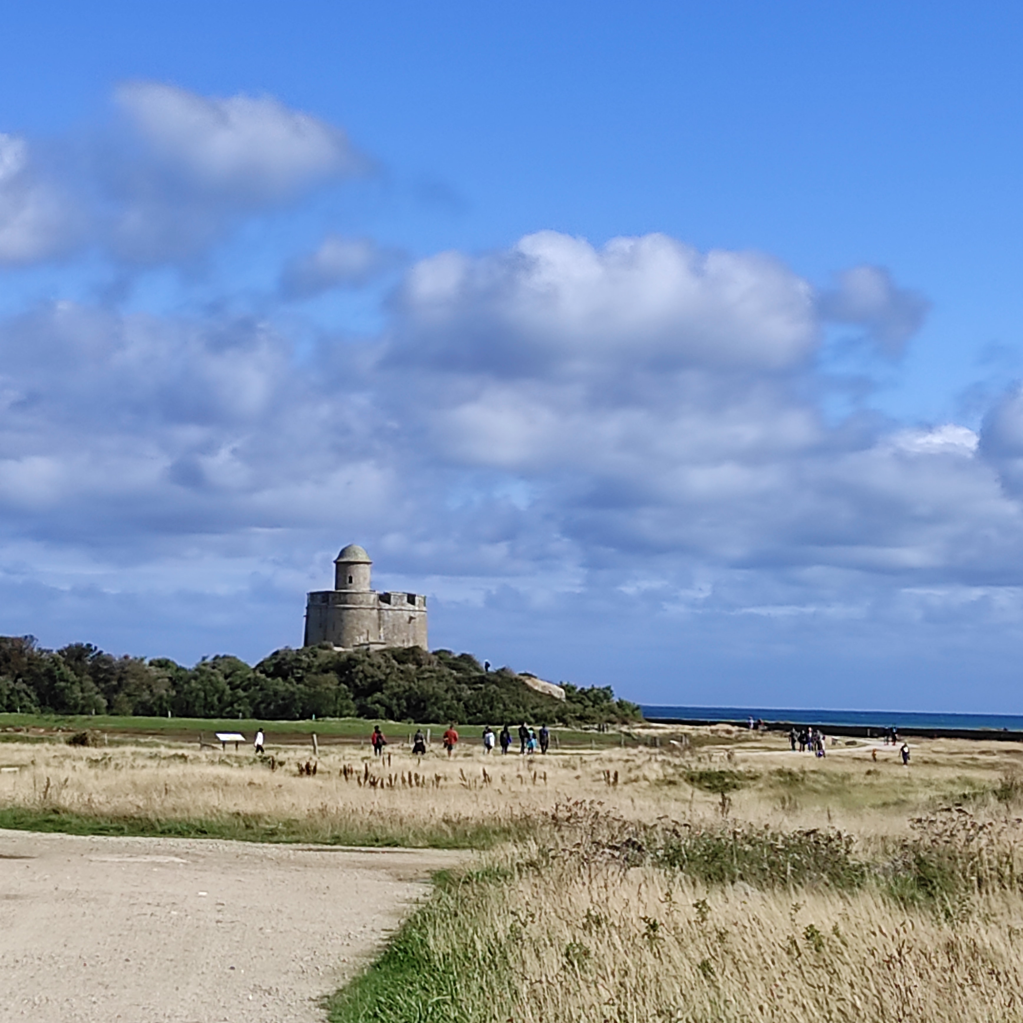 J'ai adoré le bateau à roulettes qui flotte à l'aller et roule au milieu des tables de mitilicuture au retour. L'île à beaucoup de charme avec son petit musée, ses ruines, et ses goéland qui nichent partout sur Tatihou